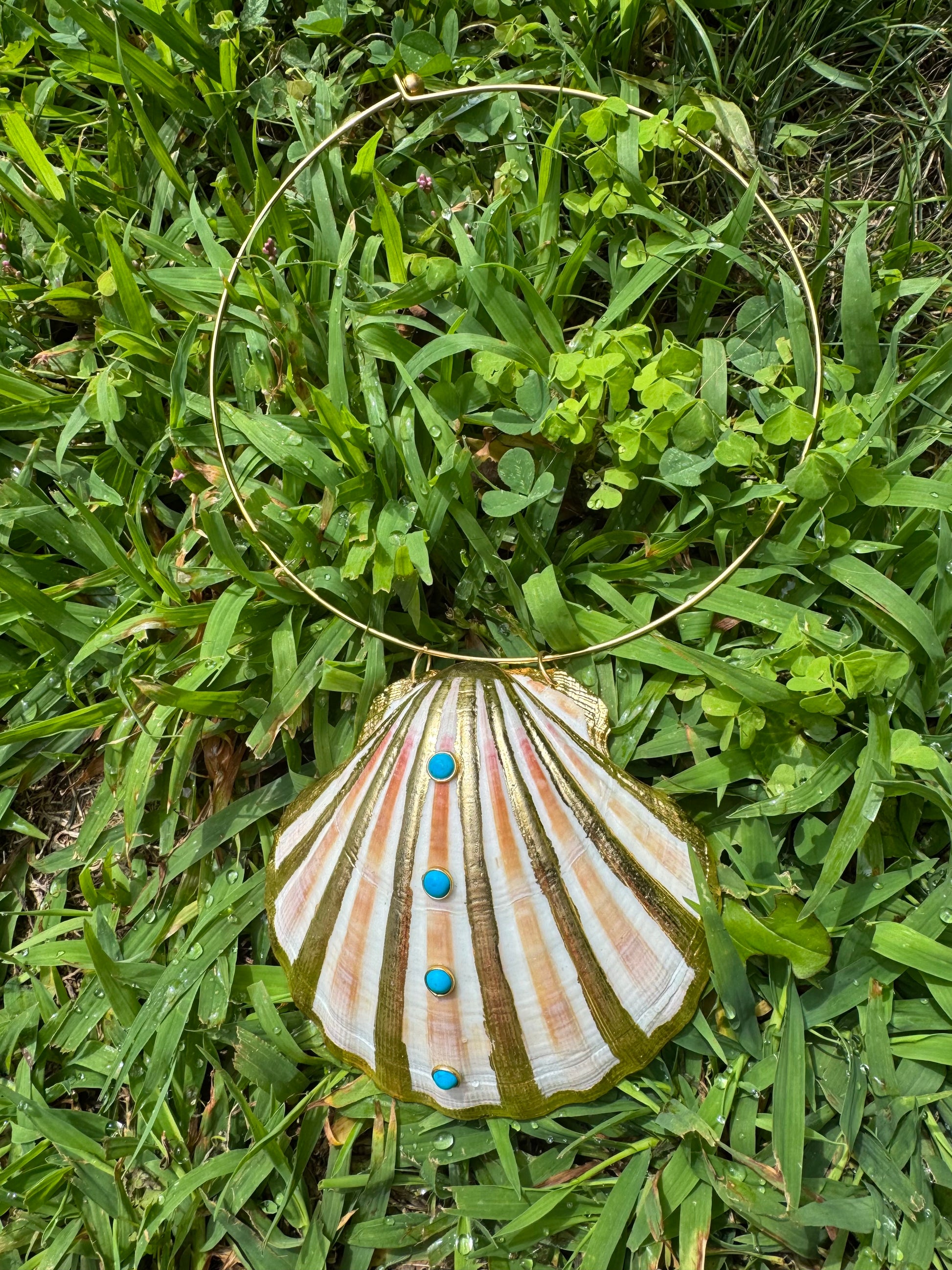 Large Shell Necklace with turquoise stones on 14K gold-filled wire